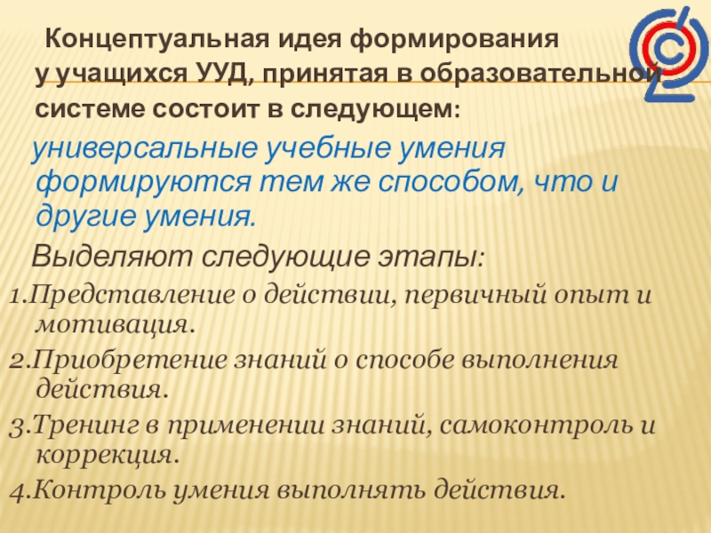 обеспечивает системное прохождение на каждом уроке 1 шага формирования всего комплекса УУД ФГОС
