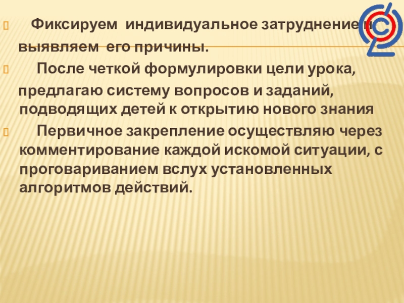 Слайд 6 Фиксируем индивидуальное затруднение и
