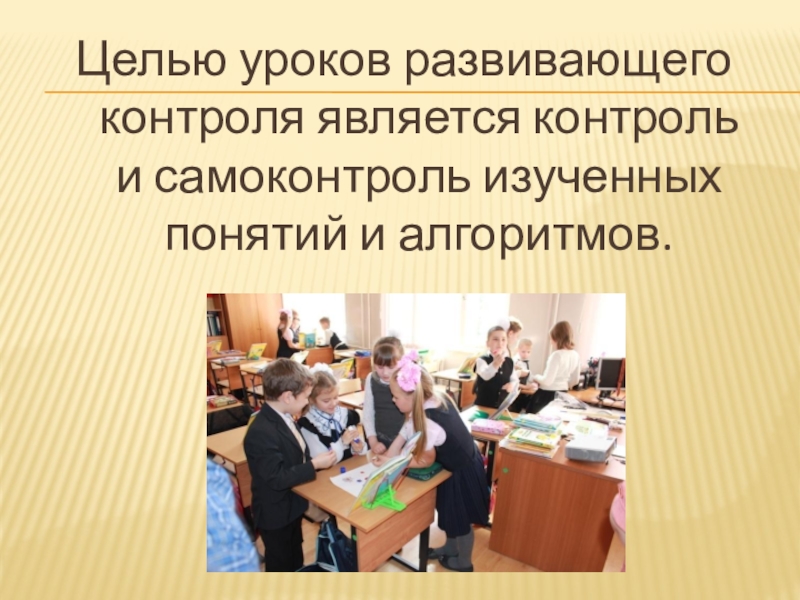 Слайд 28Целью уроков развивающего контроля является контроль и самоконтроль изученных понятий и