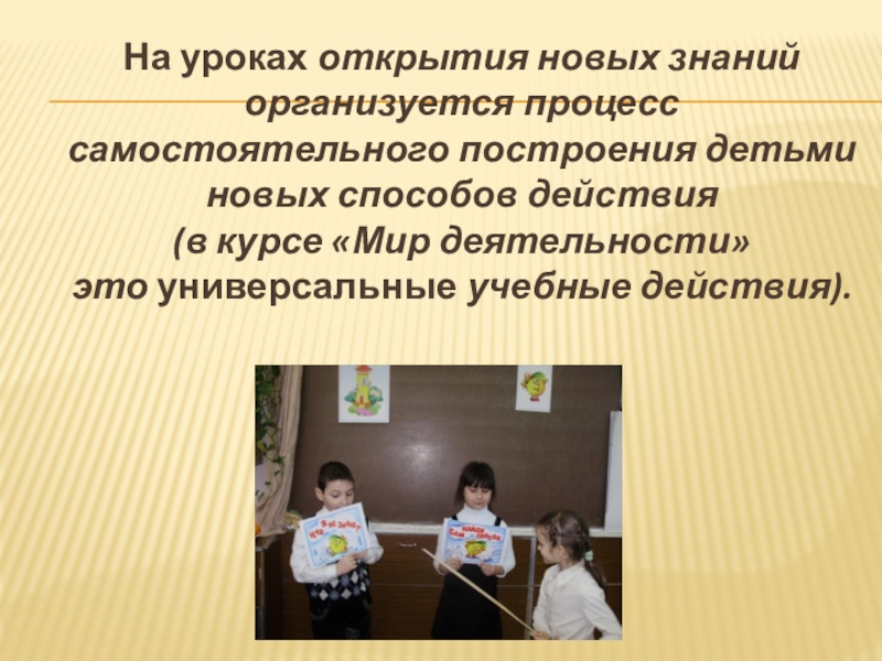 Слайд 25На уроках открытия новых знаний организуется процесс самостоятельного построения детьми новых