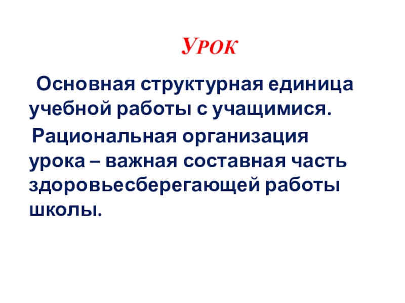 УРОК   Основная структурная единица учебной работы с учащимися.   Рациональная организация урока – важная
