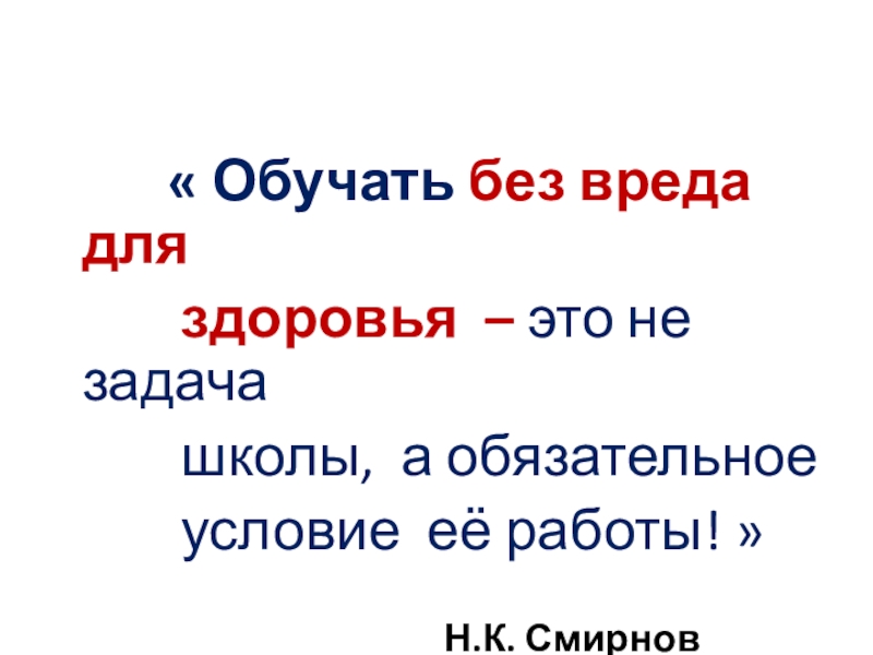 « Обучать без вреда для здоровья – это не задача школы, а обязательное