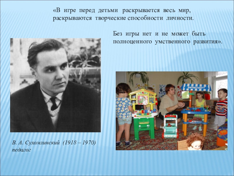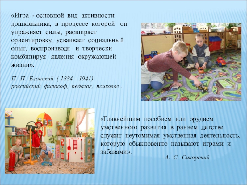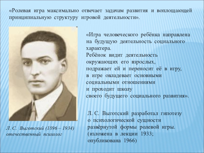 «Игра человеческого ребёнка направлена на будущую деятельность социального характера.