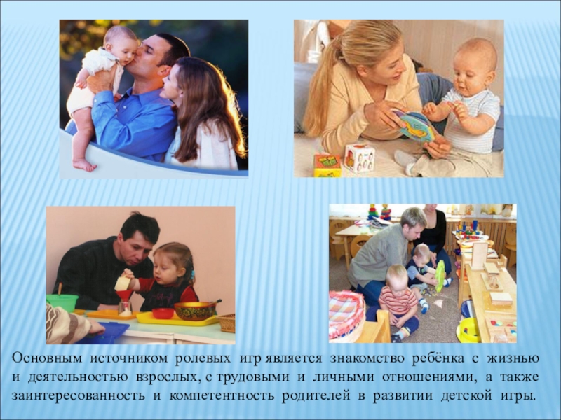 Основным источником ролевых игр является знакомство ребёнка с жизнью и деятельностью взрослых.