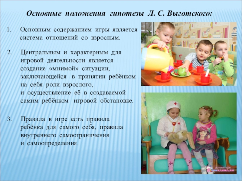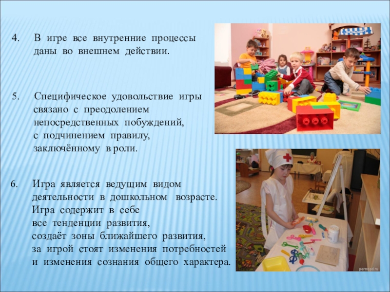 В игре складываются другие виды деятельности, которые потом приобретают самостоятельное значение.
