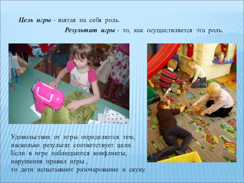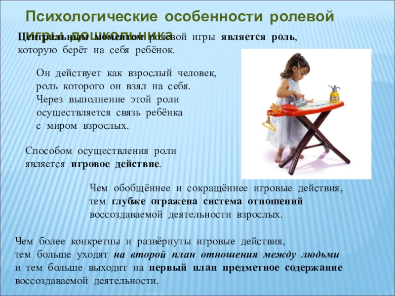 Конкретный характер тех отношений между людьми, которые дети воссоздают в игре,