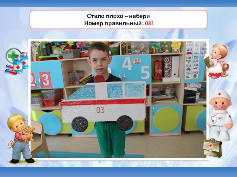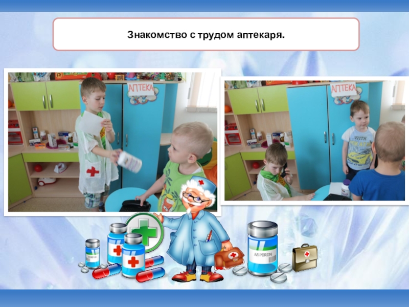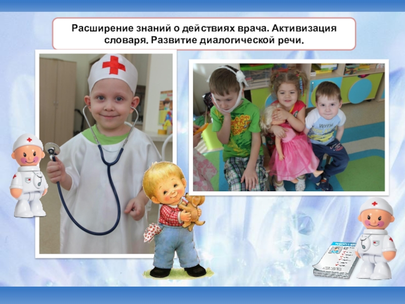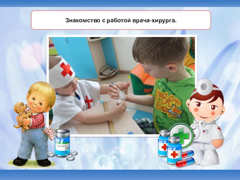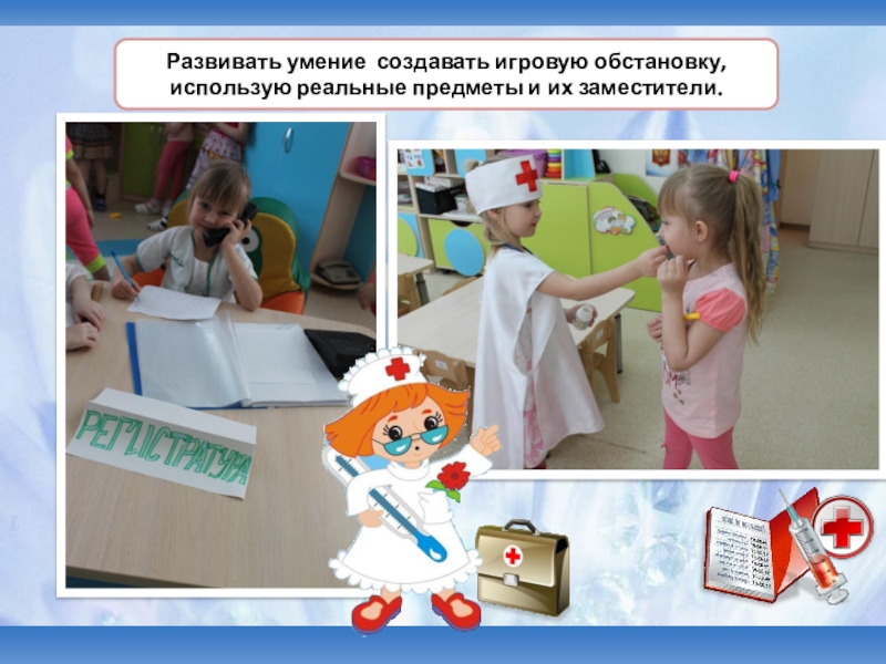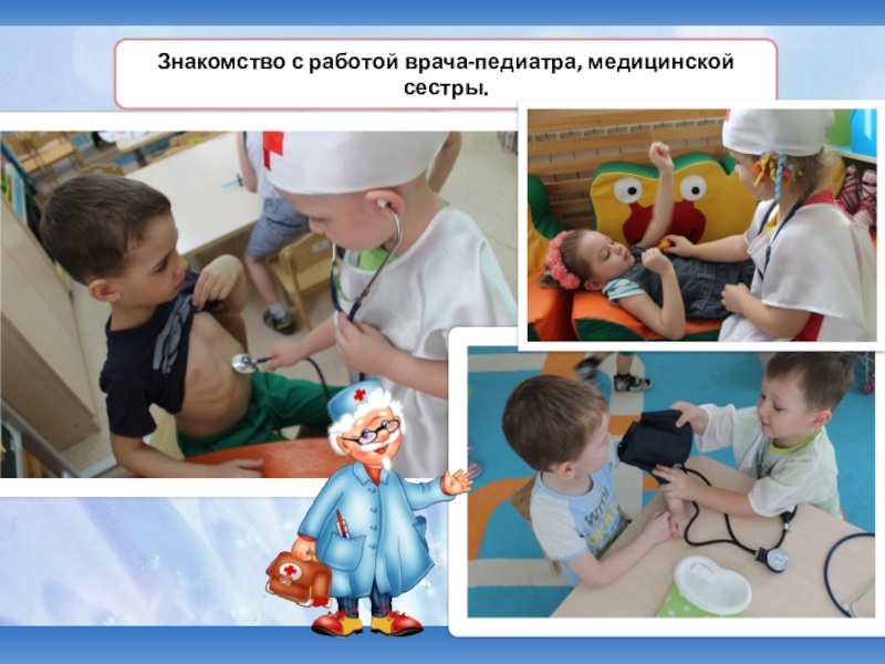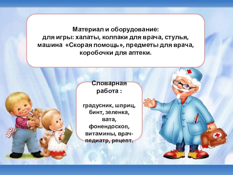 градусник, шприц, бинт, зеленка, вата, фонендоскоп, витамины, врач-педиатр, рецепт.