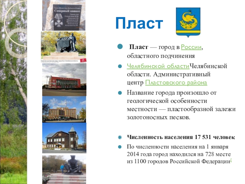 Челябинской областиЧелябинской области. Административный центр Пластовского района