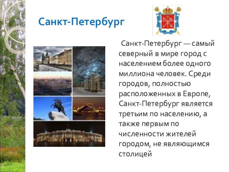 Санкт-Петербург — самый северный в мире город с населением более одного миллиона
