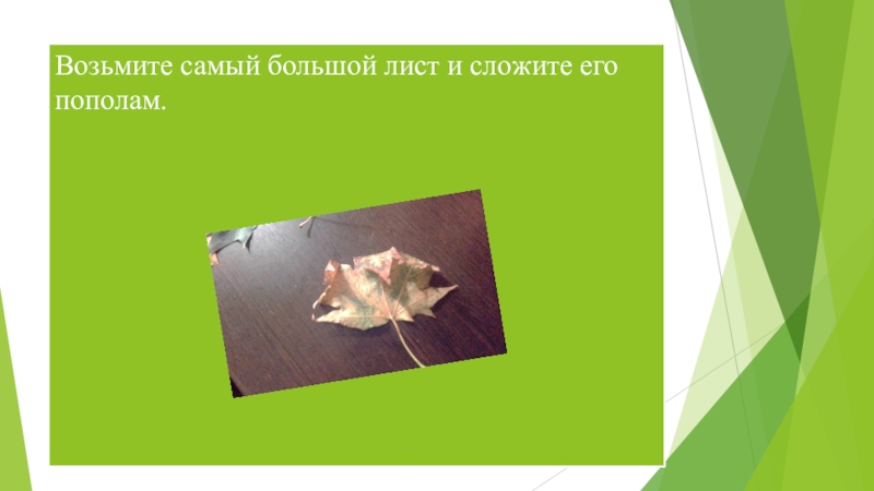Слайд 16Возьмите самый большой лист и сложите его пополам.
