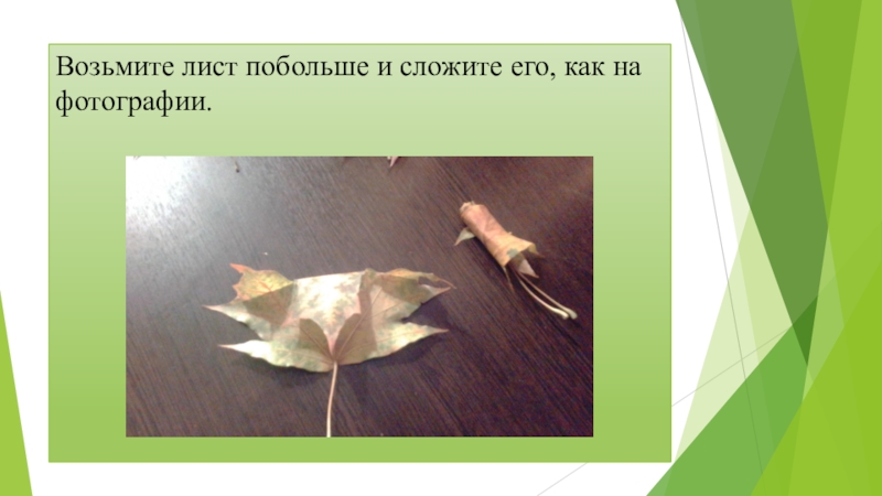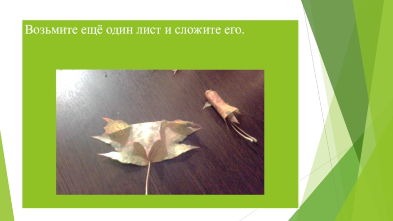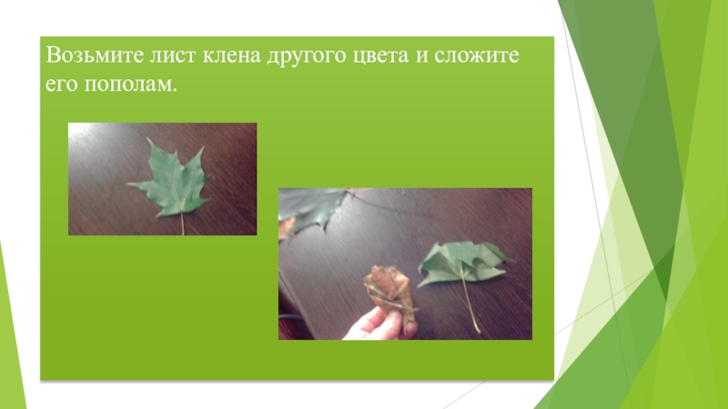 Слайд 14Возьмите лист клена другого цвета и сложите его пополам.