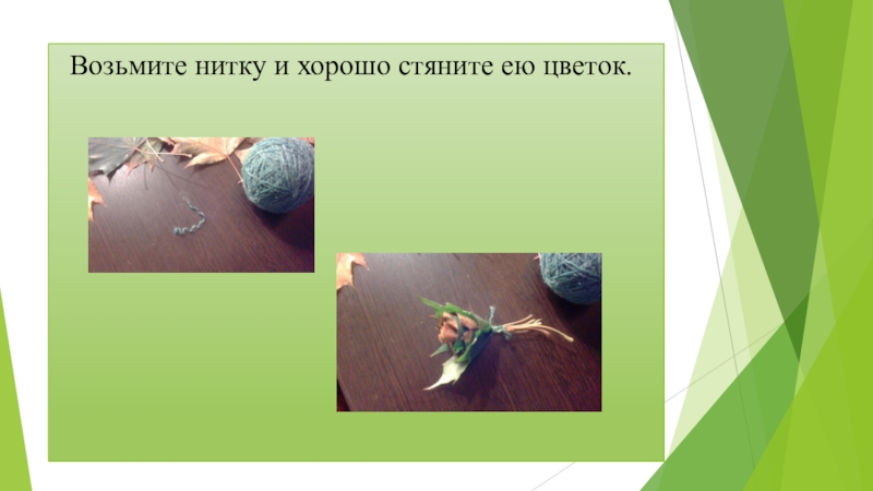 Слайд 19 Возьмите нитку и хорошо стяните ею цветок.