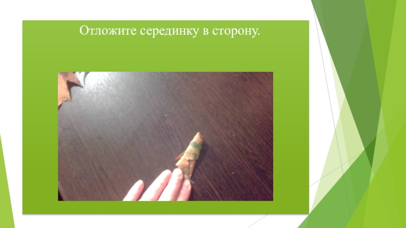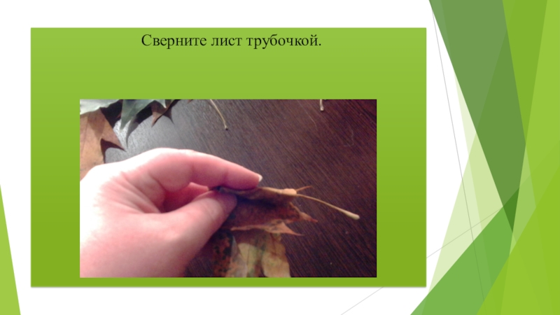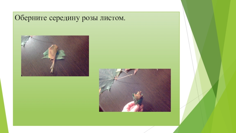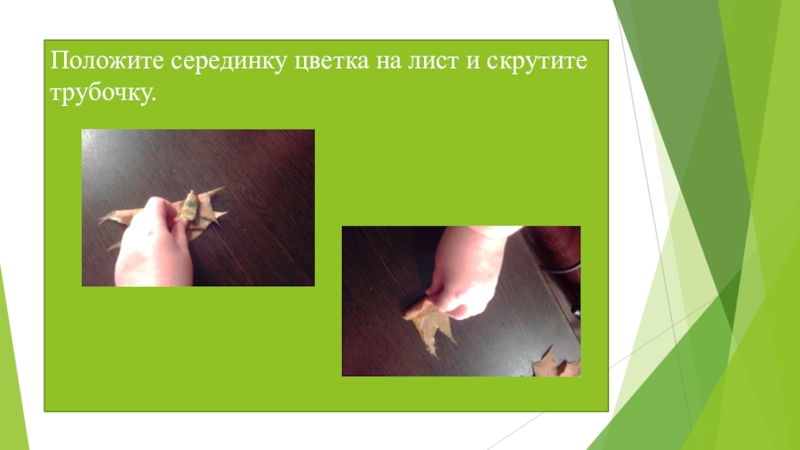 Слайд 10Положите серединку цветка на лист и скрутите трубочку.