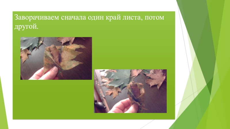 Слайд 12Заворачиваем сначала один край листа, потом другой.