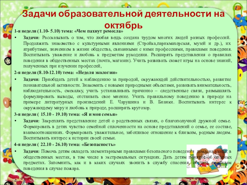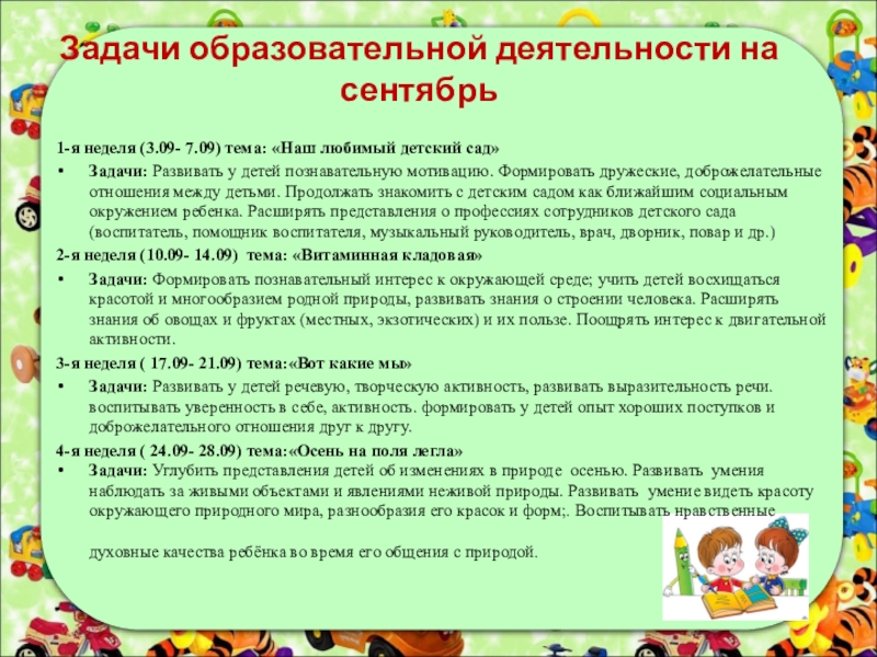 Слайд 12Задачи образовательной деятельности на сентябрь