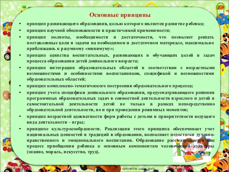 принцип единства воспитательных, развивающих и обучающих целей и задач процесса образования детей дошкольного возраста;