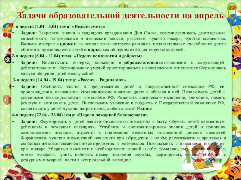 1-я неделя (1.04 - 5.04) тема: «Неделя