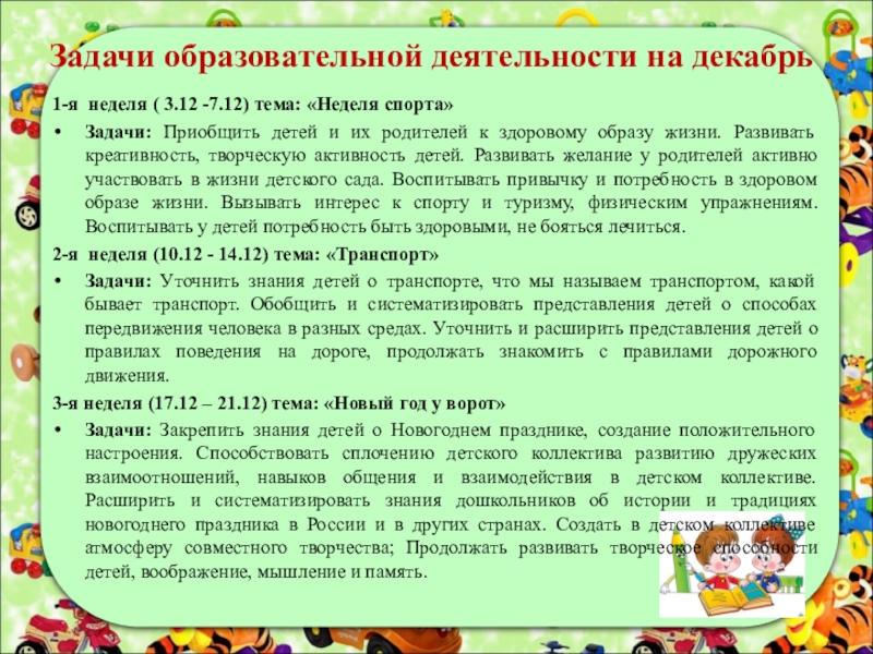 1-я неделя ( 3.12 -7.12) тема: «Неделя