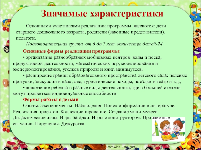 Основными участниками реализации программы являются: дети старшего дошкольного возраста, родители