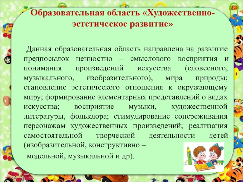 Слайд 10Образовательная область «Художественно-эстетическое развитие»