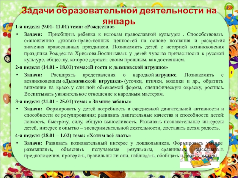 1-я неделя (9.01- 11.01) тема: «Рождество»