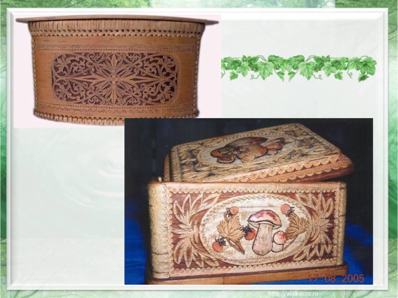 Слайд 12Из листьев березы получают желтую и зеленую краску для тканей. Почки