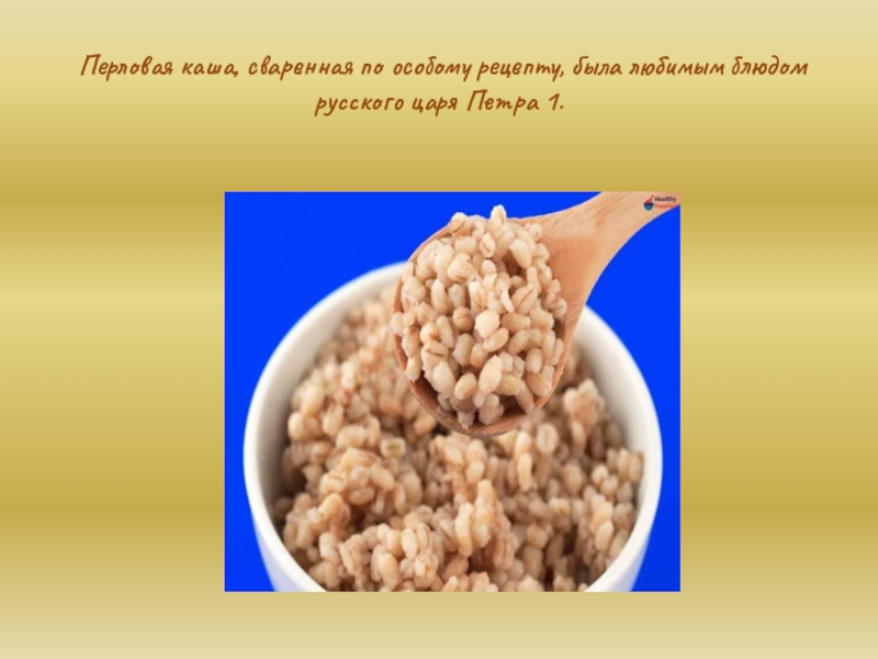 Слайд 15 Перловая каша, сваренная по особому рецепту, была любимым блюдом русского