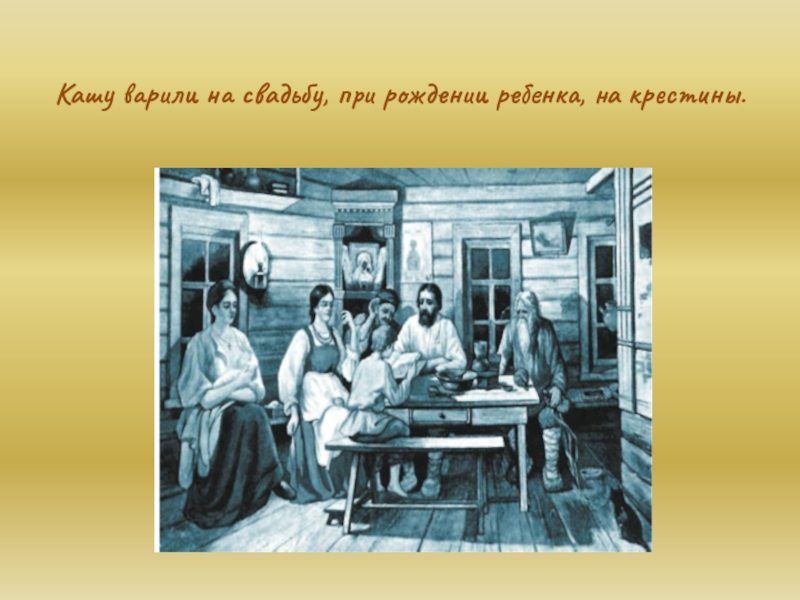 Слайд 4Кашу варили на свадьбу, при рождении ребенка, на крестины.