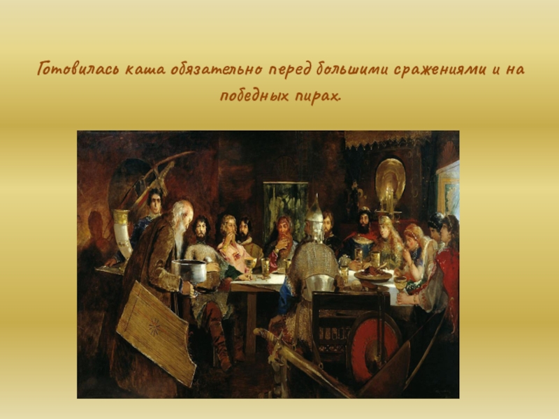 Слайд 8Готовилась каша обязательно перед большими сражениями и на победных пирах.