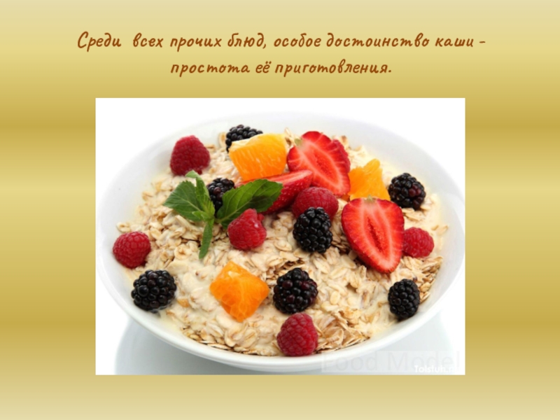 Слайд 19Среди всех прочих блюд, особое достоинство каши - простота её приготовления.