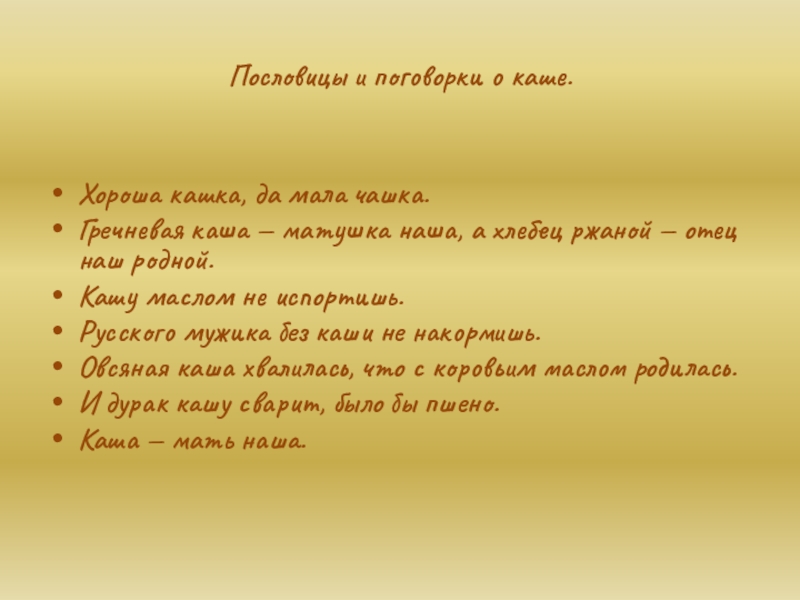 Слайд 13Самой любимой и популярной у русских была гречневая каша, хотя и