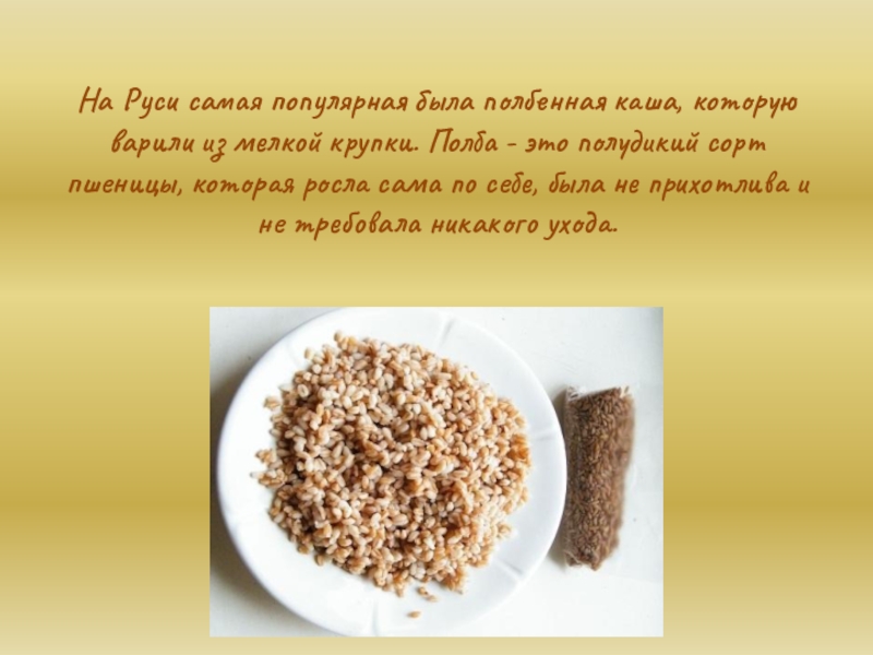 Слайд 10На Руси самая популярная была полбенная каша, которую варили из мелкой