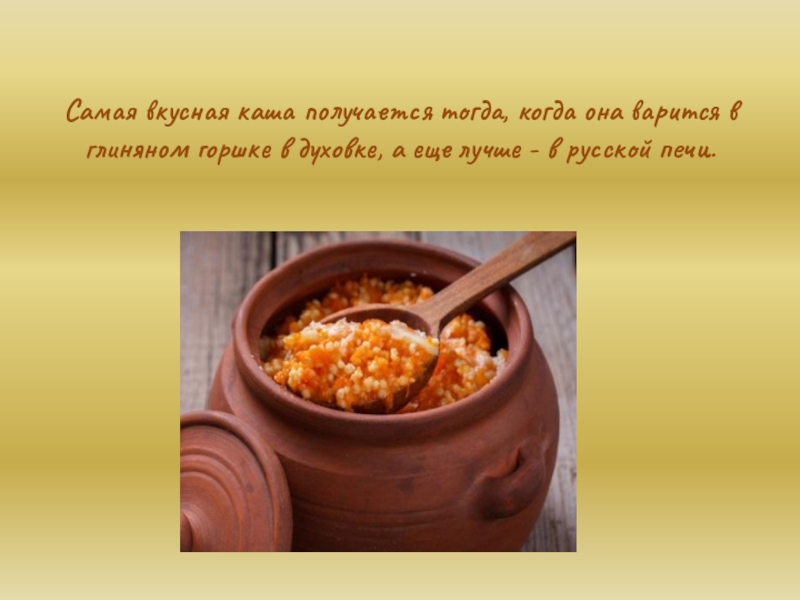 Слайд 20Самая вкусная каша получается тогда, когда она варится в глиняном горшке