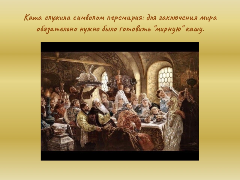 Слайд 9Каша служила символом перемирия: для заключения мира обязательно нужно было готовить
