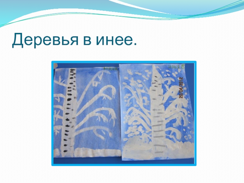 Слайд 33Рисование с элементами аппликации «Снег на деревьях».