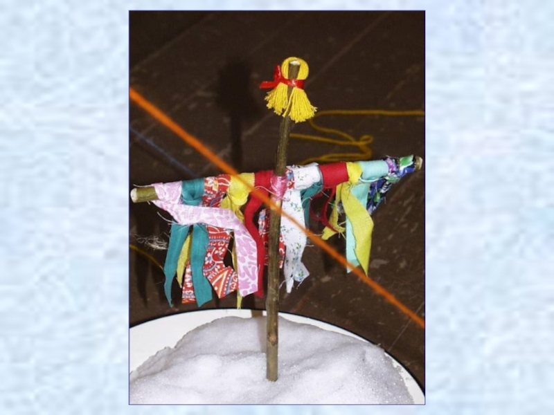 водой, обязательно освящённой. Считалось, что в эти дни вода была святой. Кукла была выполнена на крестообразной основе, её украшали тесёмочками и ленточками.