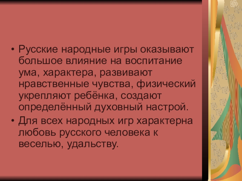 Русские народные игры оказывают большое влияние на воспитание ума, характера, развивают