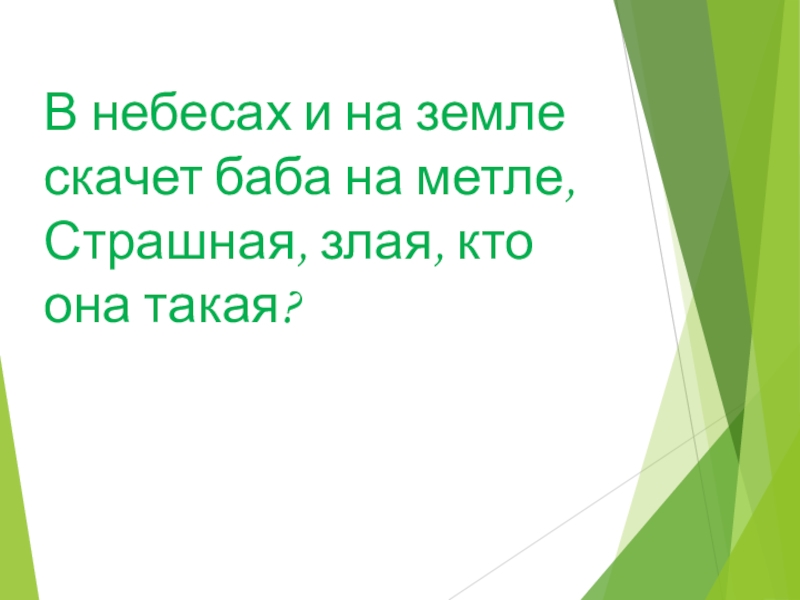 Слайд 15В небесах и на земле скачет баба на метле,