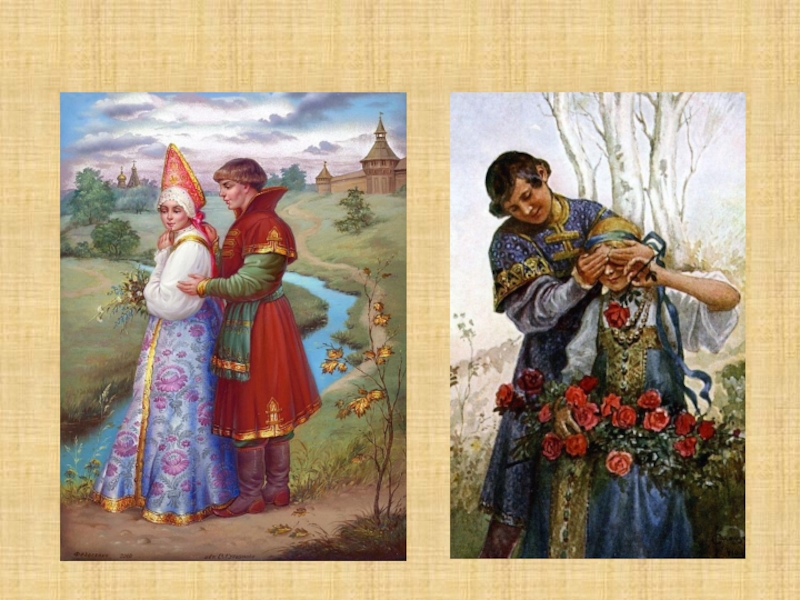 Слайд 3Добры молодцы, красны девицы