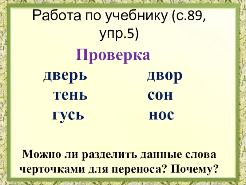 Можно ли разделить данные слова черточками для переноса? Почему?