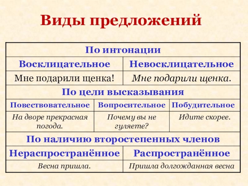 Характеризуем предложение по цели высказывания (повествовательное,побудительное, вопросительное), по интонации ( восклицательное, невосклицательное), по количеству грамматических основ ( простое, сложное), распространённое и нераспространённое.