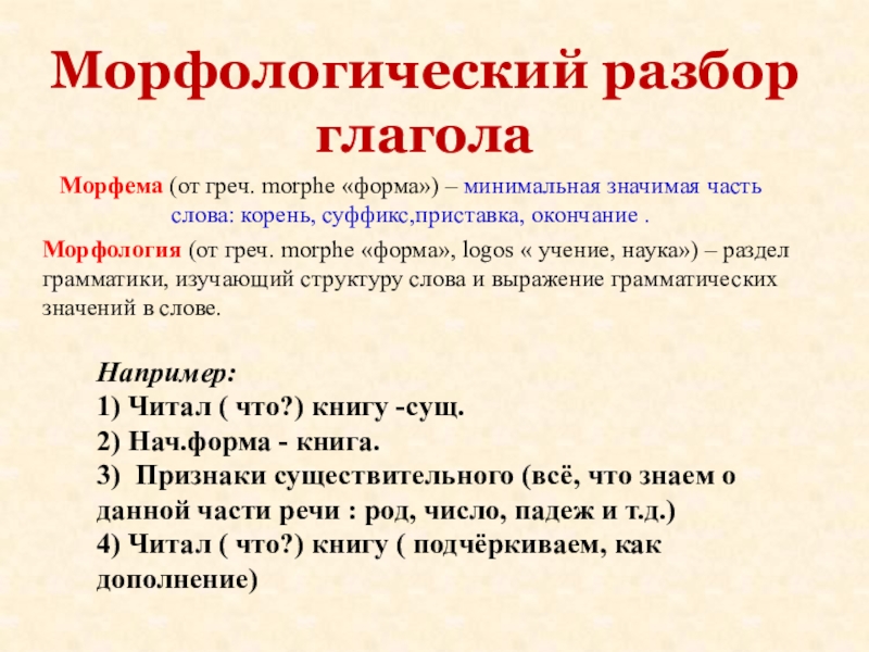 Морфология (от греч. morphe «форма», lоgos « учение, наука») – раздел грамматики, изучающий структуру слова и выражение грамматических значений в слове.