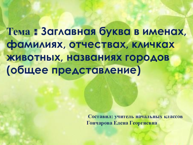 Составил: учитель начальных классов