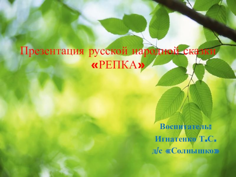 Воспитатель:Игнатенко Т.С.д/с «Солнышко»Презентация русской народной сказки  «РЕПКА»