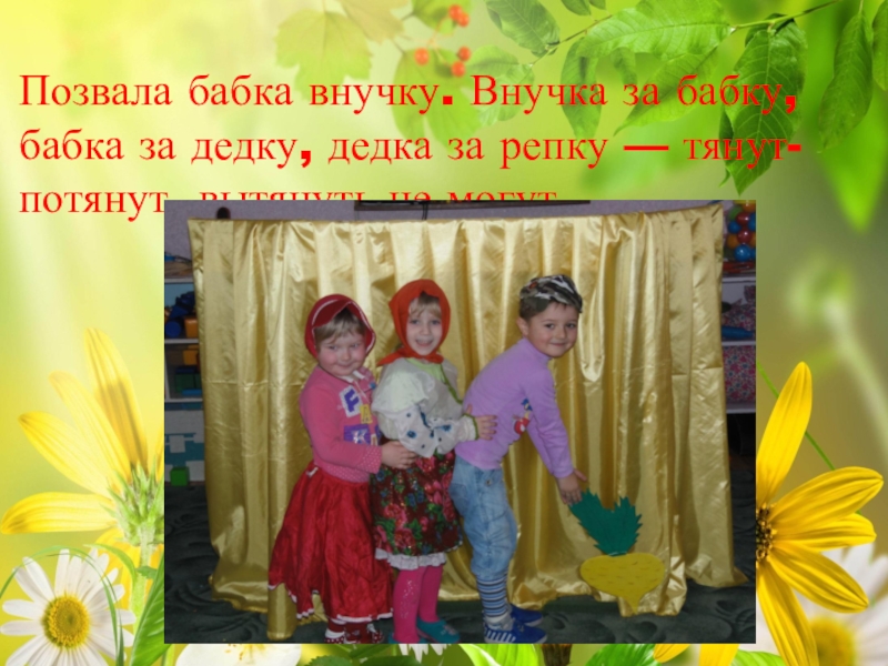 Позвала бабка внучку. Внучка за бабку, бабка за дедку, дедка за репку — тянут-потянут, вытянуть не