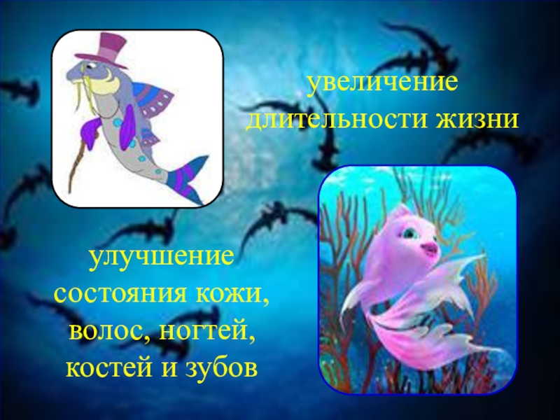 увеличение длительности жизниулучшение состояния кожи, волос, ногтей, костей и зубов