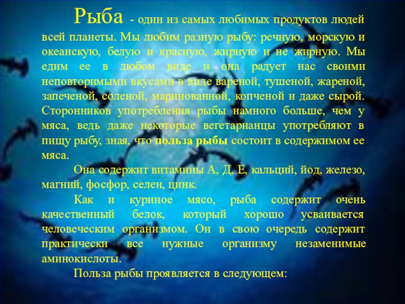 Слайд 2Рыба - один из самых любимых продуктов людей всей планеты. Мы