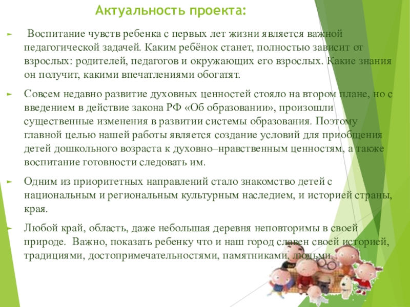 Любой край, область, даже небольшая деревня неповторимы в своей природе. Важно, показать ребенку что и наш город славен своей историей, традициями, достопримечательностями, памятниками, людьми.