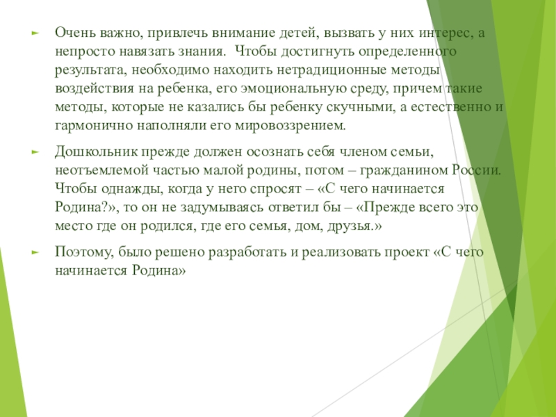 Слайд 5Очень важно, привлечь внимание детей, вызвать у них интерес, а непросто навязать