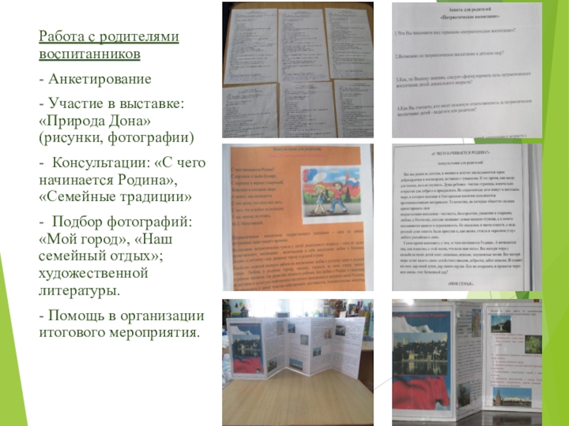 - Консультации: «С чего начинается Родина», «Семейные традиции»